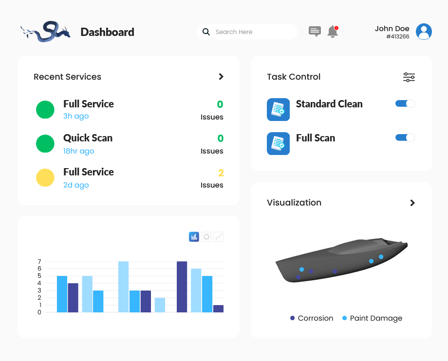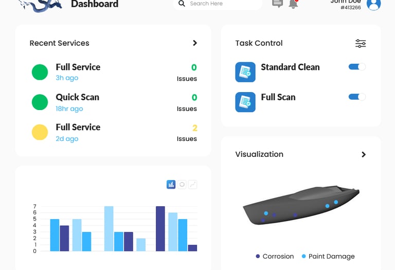 Equipped with high-resolution cameras, our system provides real-time hull inspections, detecting structural damage and corrosion.